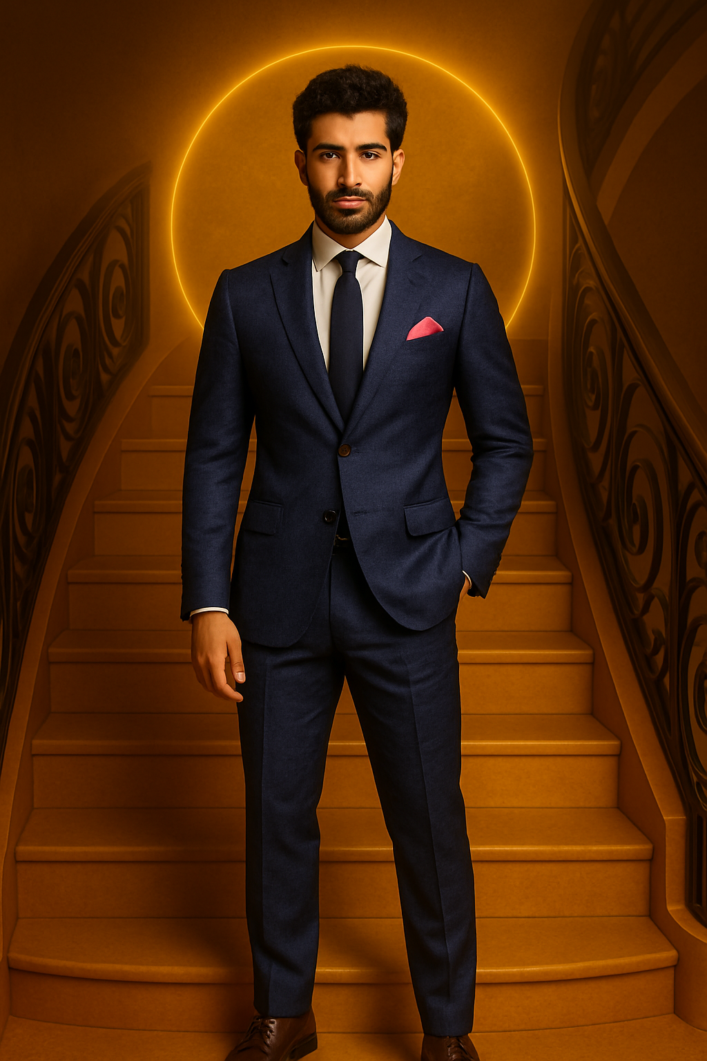 Ce costume est taillé dans un velours de coton mélangé, au motif paisley subtil, parfait pour celles et ceux qui veulent marquer les esprits lors des grandes occasions. Sa texture douce et son tombé structuré lui confèrent une prestance rare.